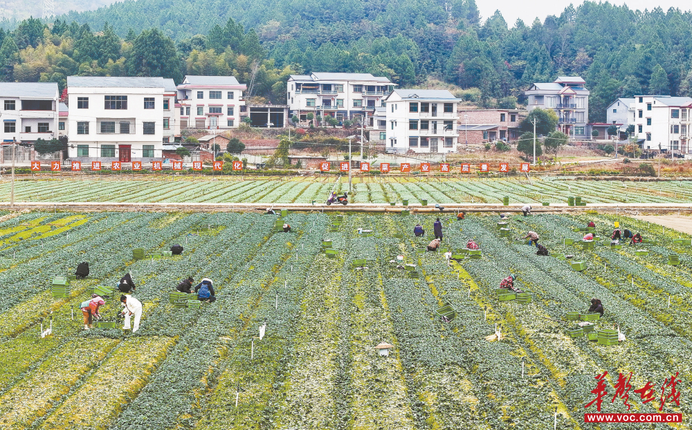 12月3日,新田縣中山街道崗上村,村民在采收新鮮時蔬。近年來,該縣充分發揮富硒土地優勢,積極對接粵港澳大灣區蔬菜市場,采用“稻+蔬”輪作模式,大力發展冬季蔬菜種植產業,實現一年四季無閑田,有效帶動農業增效、農民增收。