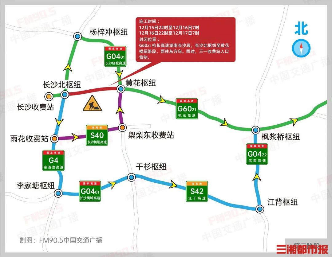 封閉位置:G6021杭長高速長沙段,永安收費站至黃花樞紐路段,東往西方向。同時,永安、黃花收費站入口進行管制。
