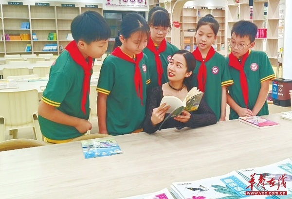李星琪(右三)帶領(lǐng)學(xué)生閱讀。通訊員 攝?