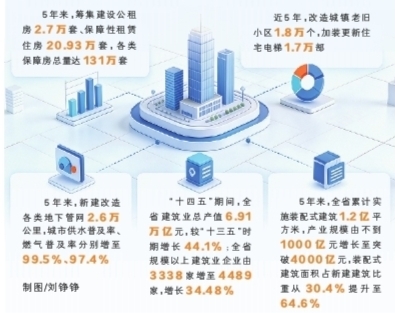住房條件更優(yōu)。“十四五”期間,全省商品房銷售面積達(dá)2.94億平方米,城鎮(zhèn)人均住房面積49平方米,各類保障房總量達(dá)131萬(wàn)套,對(duì)城鎮(zhèn)低保、低收入住房困難家庭實(shí)現(xiàn)應(yīng)保盡保。城鎮(zhèn)老舊小區(qū)累計(jì)改造1.8萬(wàn)個(gè),加裝更新住宅電梯1.7萬(wàn)部,住宅小區(qū)物業(yè)服務(wù)覆蓋率超75%。